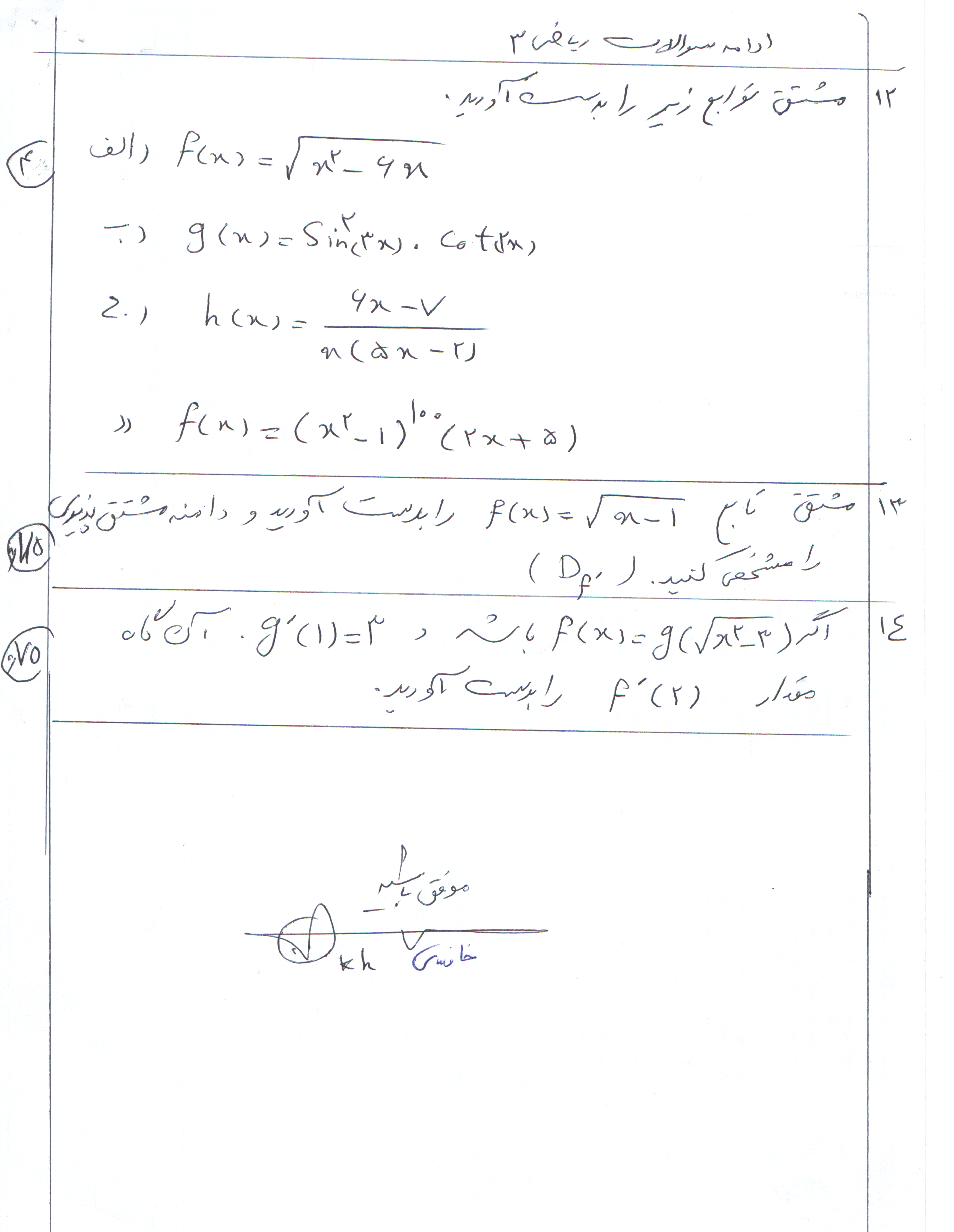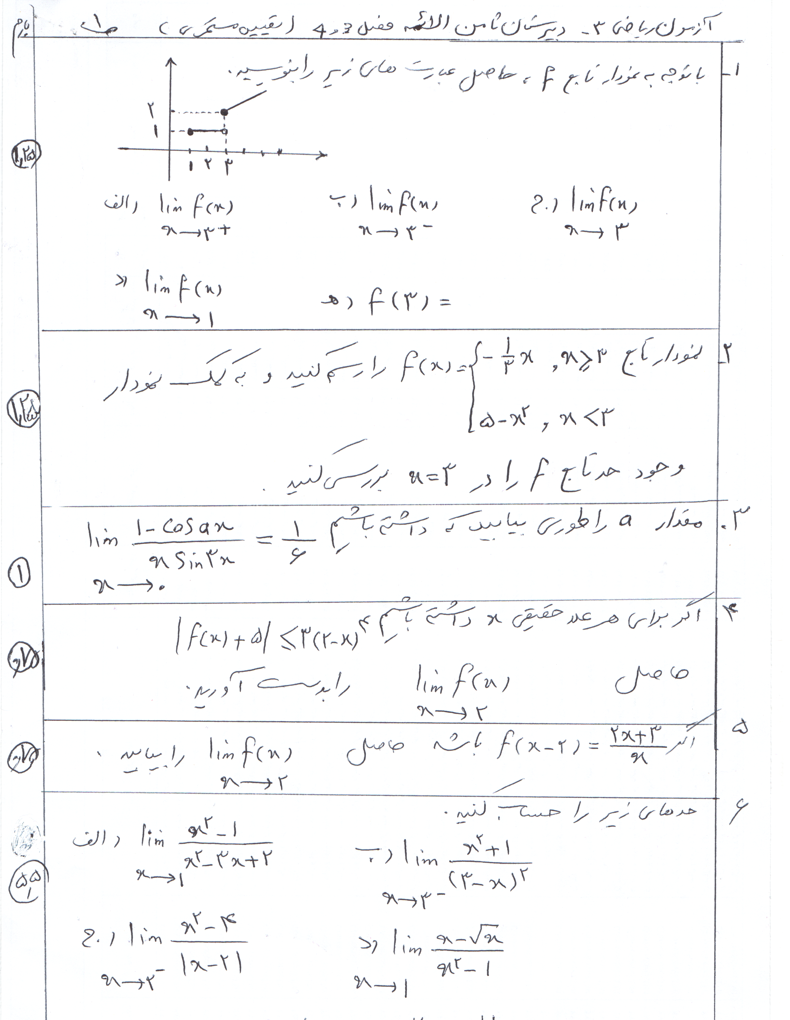 سوالات امتحانی ریاضی3