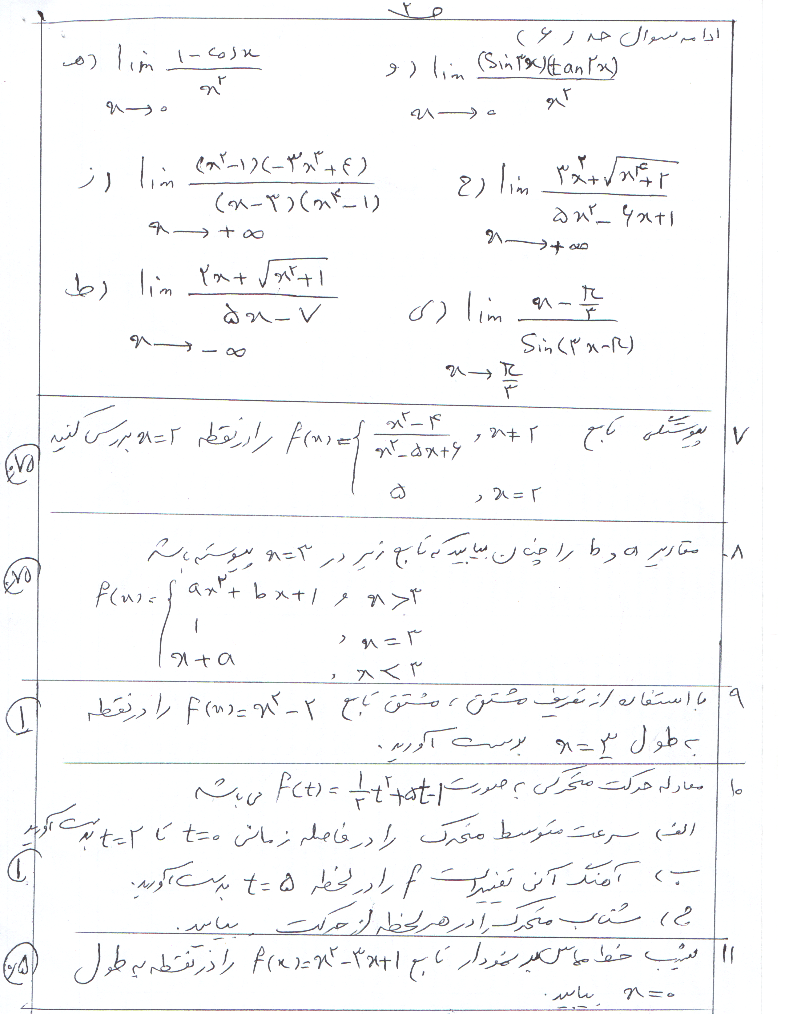 سوالات نهایی خرداد92 حسابان و دیفرانسیل