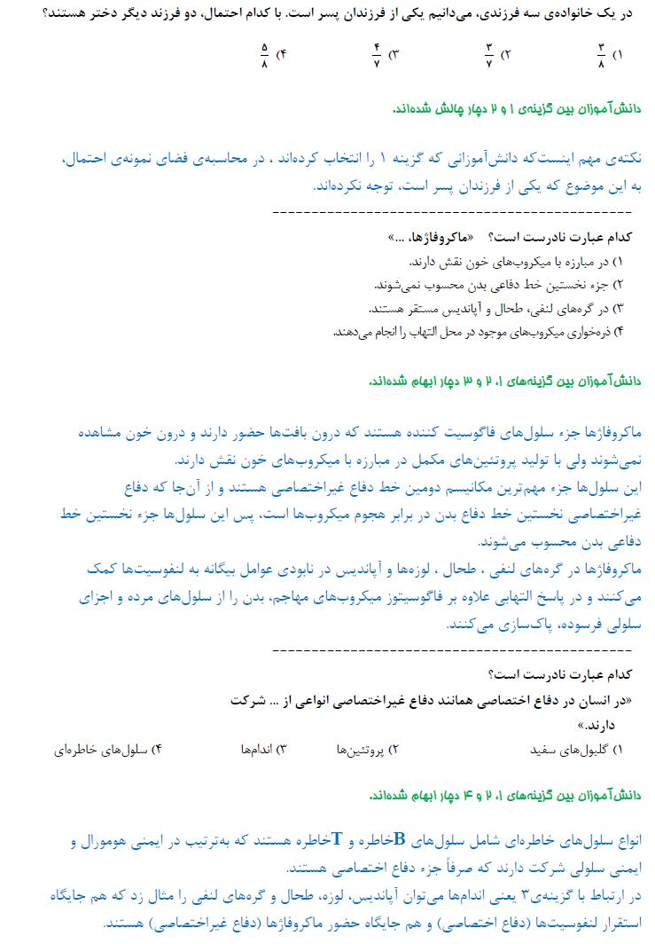 در مطلب زير اين سؤالها به همراه توضيح گزينهها آمده است.